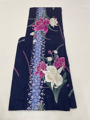浴衣 夏 小さな花柄 あやめ 菖蒲 カキツバタ 濃紺 浴衣 個性的 奇麗 夏 花火 花火大会 阿波踊り 夏祭り 盆踊り 可愛い オシャレ